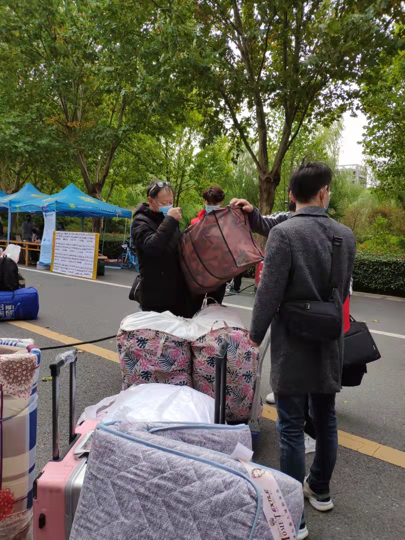 一大早党员们就来到迎新现场,主动接过新生们沉甸甸的行李箱,耐心地指引新生们办理相关手续,根据新生所在宿舍的不同位置,安排专人引领新生到宿舍门口。党员们热情地向新生们介绍校园布局、学习生活等情况,解答新生关心和疑惑的各类问题,为他们提供周到的服务。