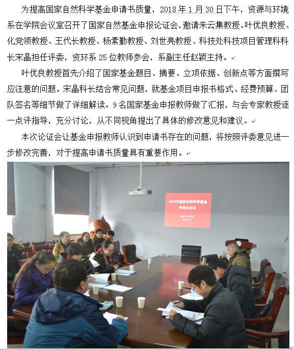 资源与环境系召开国家自然科学基金申报论证会