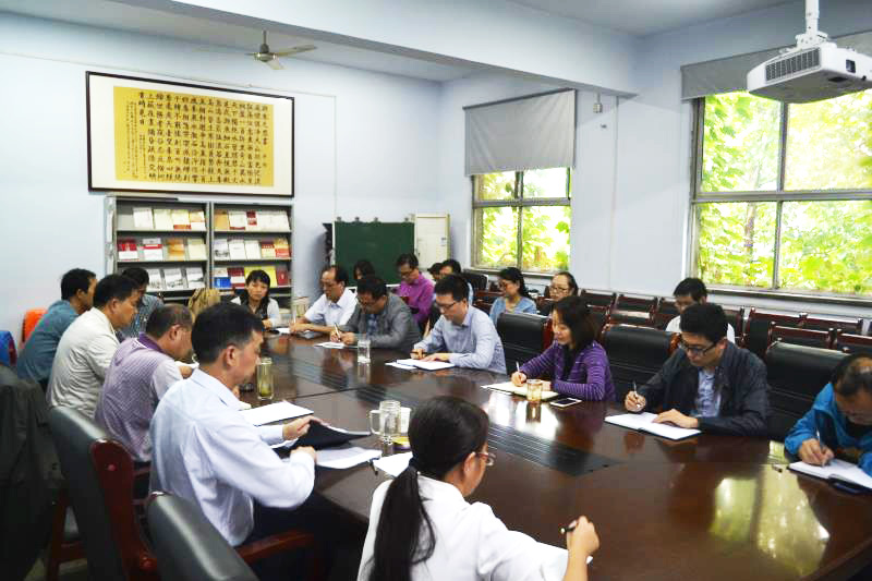 院长赵鹏对学院学科学位建设,科研平台发展,学科专业特色和科研成果进行汇报,指出学院虽然取得阶段性成果,在“十三五”规划中主持了一个专项和多个课题,但与学校党委的要求还存在差距,学院将继续加大努力,争创佳绩。