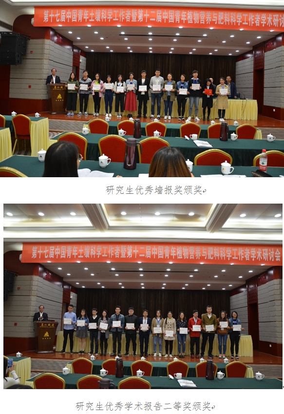 叶优良教授分别就农田重金属污染化学钝化的研究与问题展望、作物水肥一体化技术研究与应用、河南农业绿色发展与实践等主题报告。随后,中国农业科学院资源区划所刘晓燕副研究员就如何办好《植物营养与肥料学报》作了系统和详细的汇报交流。年会共评选出优秀墙报奖15项,优秀研究生学术报告一等奖8项和二等奖16项;并确定安徽科技学院为2019年青土会承办单位。最后,中国植物营养与肥料学会青年工作委员会主任杨相东研究员对本次会议做了总结发言,他充分肯定了本次会议取得的成果,认为本次会议展现了我国青年科学工作者在土壤、植物营养与施肥领域的最新研究动态和成果,反映了本领域的最新研究热点和趋势;并呼吁全国土壤、植物营养与肥料领域青年工作者加强交流、团结协作,共同推动中国土壤和植物营养、肥料学科的发展。
