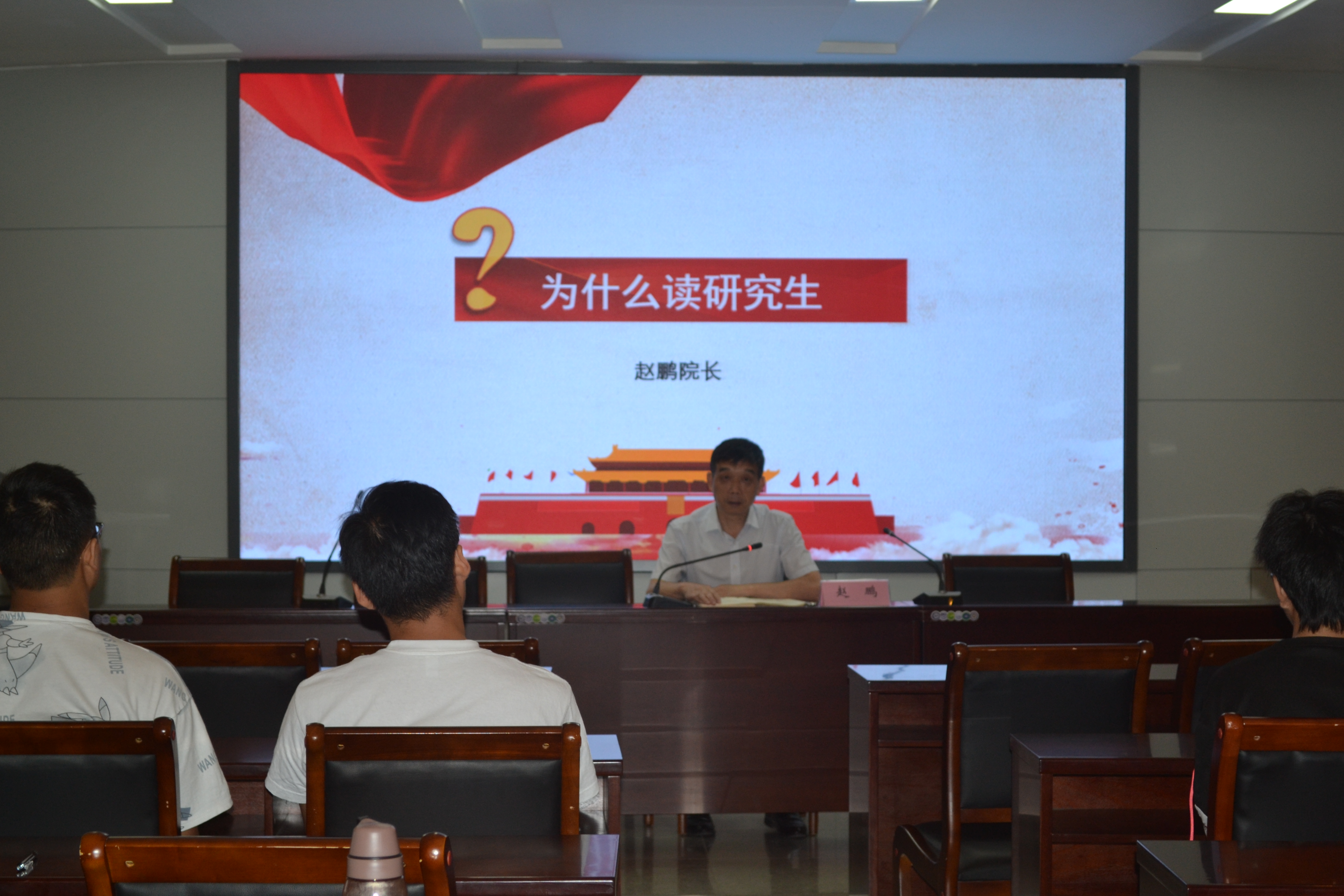 党委书记毕庆生以抗疫精神为出发点,结合当前时政热点,指出研究生学习与本科学习的不同之处,期望同学们要有学习方法的转变,主动学习,脚踏实地,端正态度。并强调大家要注重品德修养,树立正确的世界观、人生观和价值观,坚定中国特色社会主义信念和共产主义理想,全面、客观、科学的认识社会的发展,做一个有益于他人、社会和国家的新时代研究生。最后祝愿研究生圆满完成学业,走向社会,为国家多做贡献。赵鹏院长以为什么读研究生为题,结合自己的学习研究和工作经验,从为什么要读研究生、读研究生应该有怎样的目标和怎么读好研究生三部分层层深入,针对同学们学习方面的问题解疑答惑,指出学习过程中要做到多读、多学、多问,树立学习目标并为之不懈奋斗,同时期望研究生注重提高个人修养、重视课程学习、积极参加各类学术活动、保持心理健康、积极锻炼身体。最后,勉励研究生严谨求学、诚实做人,锐意创新、把握科技前沿,创造有价值的科研成果,自觉融入国家建设中,做一个与时俱进的新时代研究生。