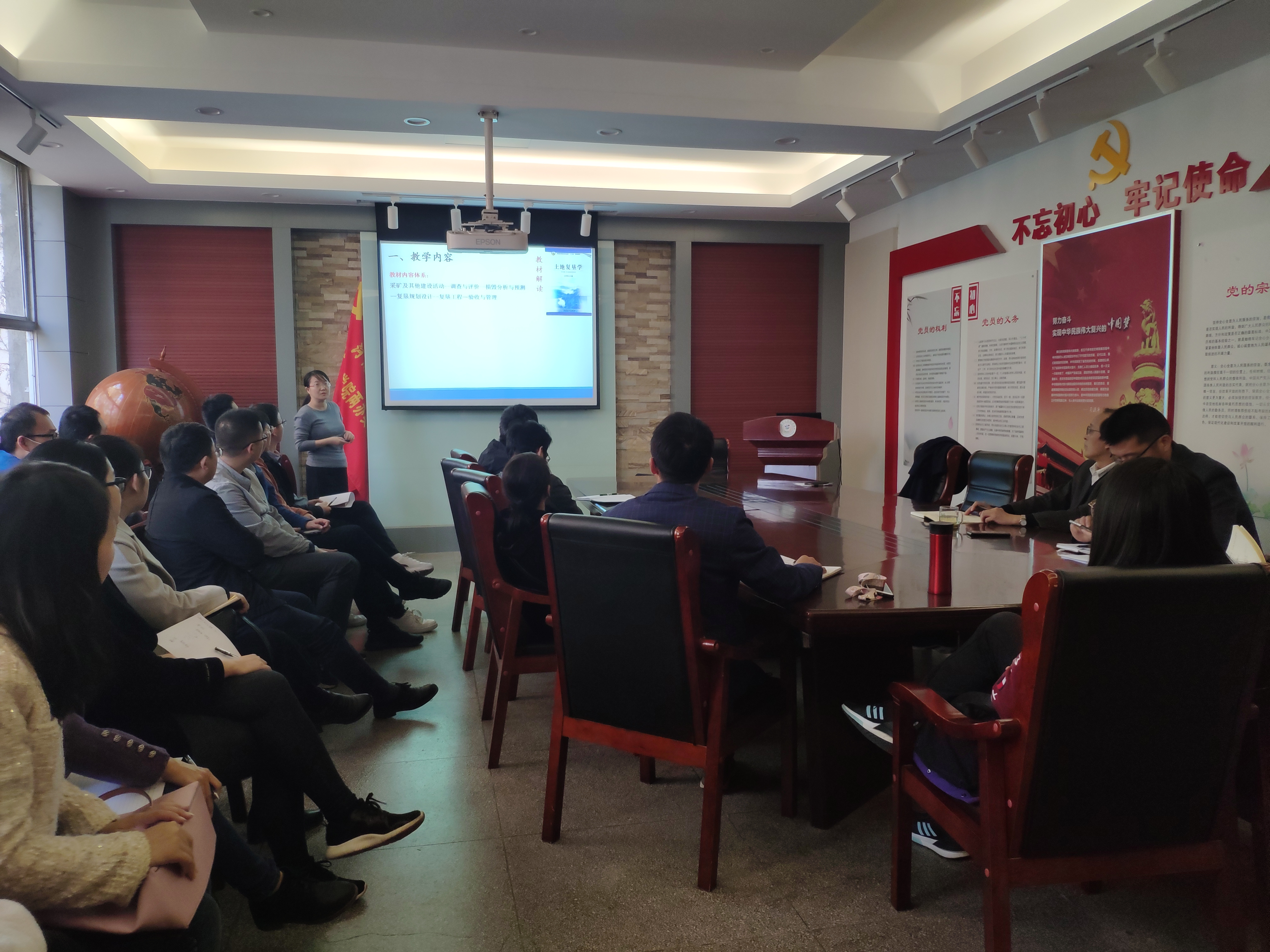 观摩课上,汪洋博士以“测土配方施肥技术”为题,通过生动的实例和图片引出教学题目,教学内容环环相扣,生动鲜活;李玲教授以“土地损毁分析与预测”为题,展示了教学目标、教学内容、教学设计和教学创新内容,内容系统,深入浅出。