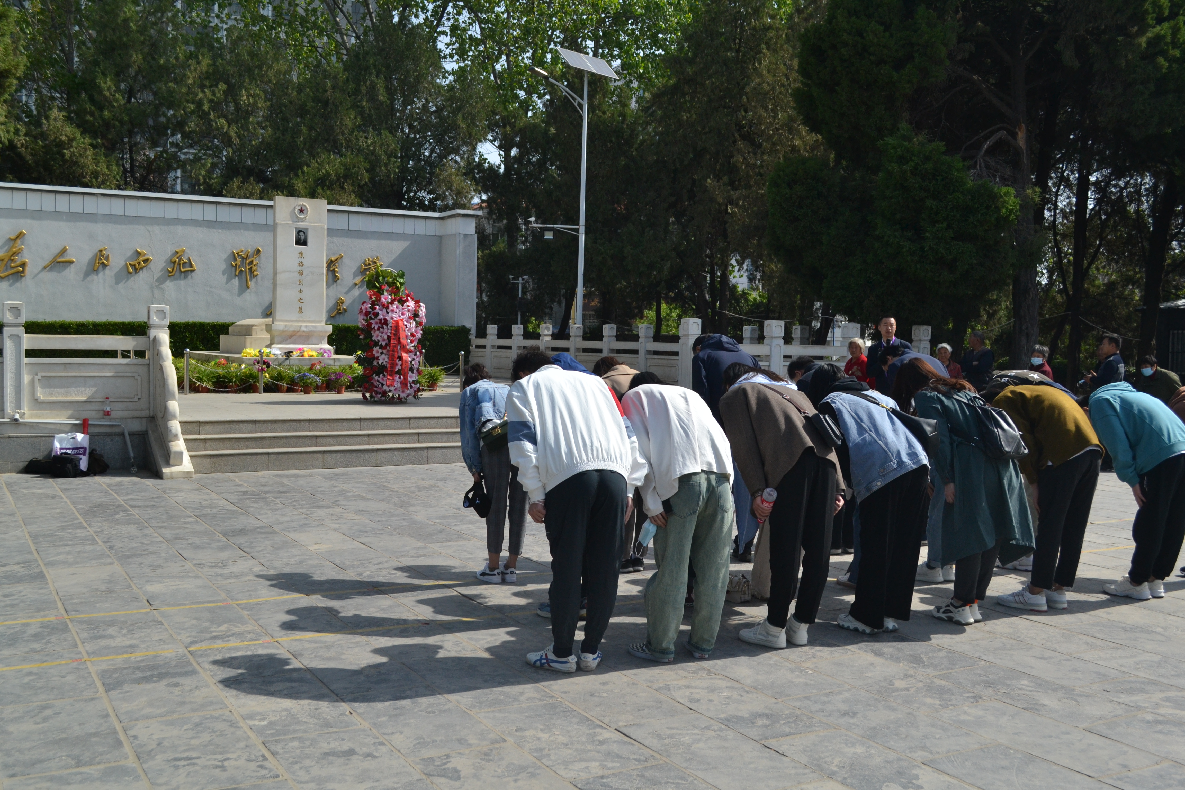 师生向焦裕禄墓敬献花篮。全体党员在焦裕禄墓前重温入党誓词,回顾入党初心。整个过程庄严肃穆,表达了在场师生对焦裕禄同志的无限崇敬之情。