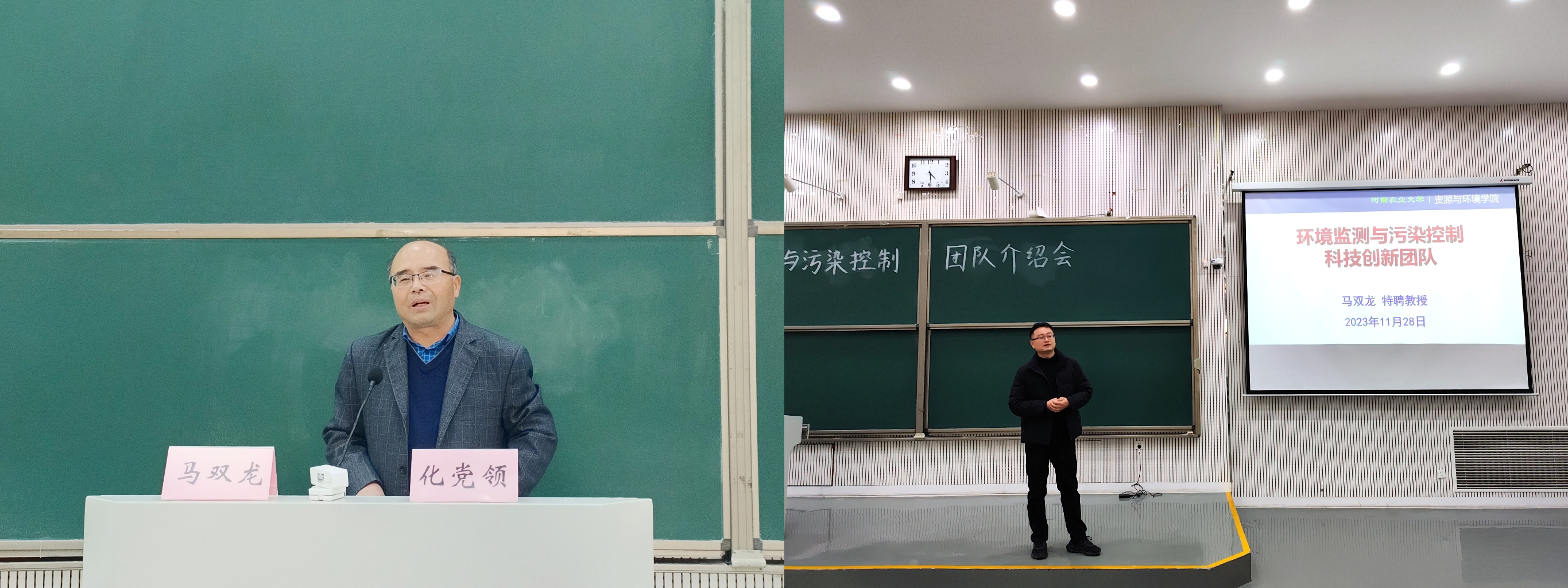 会上,马双龙副教授代表团队分别从团队简介、师资力量、研究内容、科研方向等方面详细介绍了环境监测与污染控制团队。他从农业面源污染防控与温室气体等有害气体转化脱除、农业土壤重金属污染防控与修复等研究内容入手,强调了学习规划的重要性,并鼓励同学们积极参加各类学术活动,开阔视野,提高综合素质。最后化党领教授代表团队回答学生们提出的问题,他希望同学们争做学术型人才,积极参与相关科研项目,培养自己的科学思维和科研能力并提出三点寄语:第一,要求同学们上课认真听讲、努力学习,保持积极风貌;第二,要求同学们加强科研作风,不要颓废度日建设;第三,希望同学们在学习中稳扎稳打,在大学期间有所长进,做出成绩。