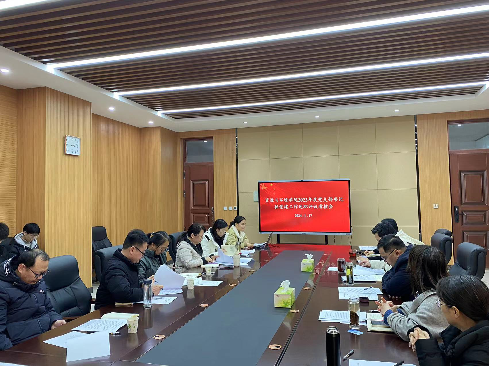 在力行楼中254会议室召开2023年度党支部书记抓党建工作述职评议考核会。院领导班子成员、全体教职工党支部书记和部分学生党支部书记参加,会议由院党委副书记陈景红主持。