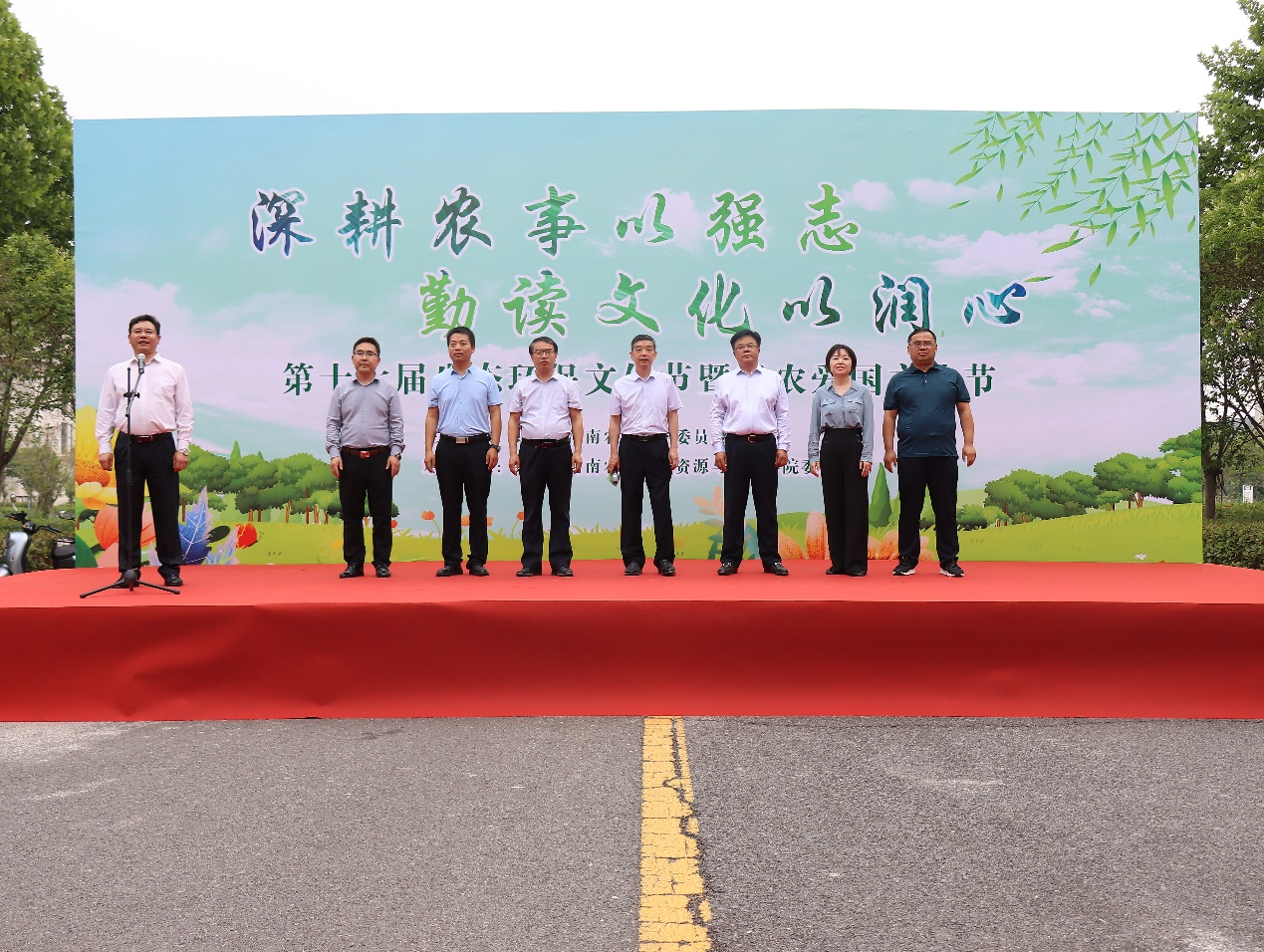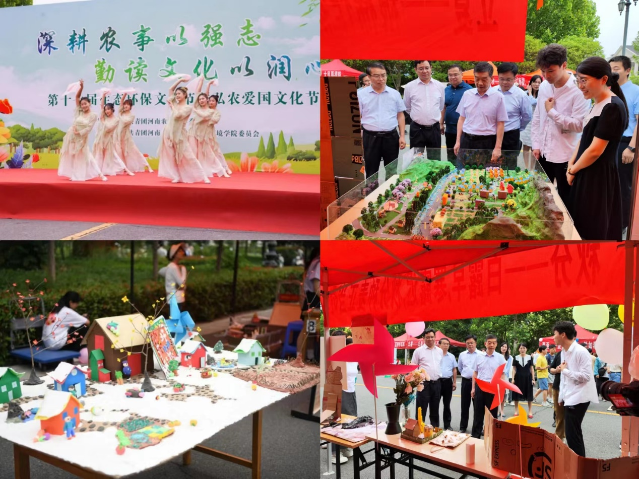 第十七届生态环保文化节暨弘农爱国文化节在龙子湖校区弘农大道隆重举行。副校长赵鹏、党委学生工作部部长徐峰、招生就业办公室主任张红阳、党委宣传部副部长周红飞、校团委副书记雷雯、研究生院副院长郝四平,资环学院党委书记李国权、院长王宜伦出席活动。资环学院师生代表参加活动,开幕式由李国权主持。