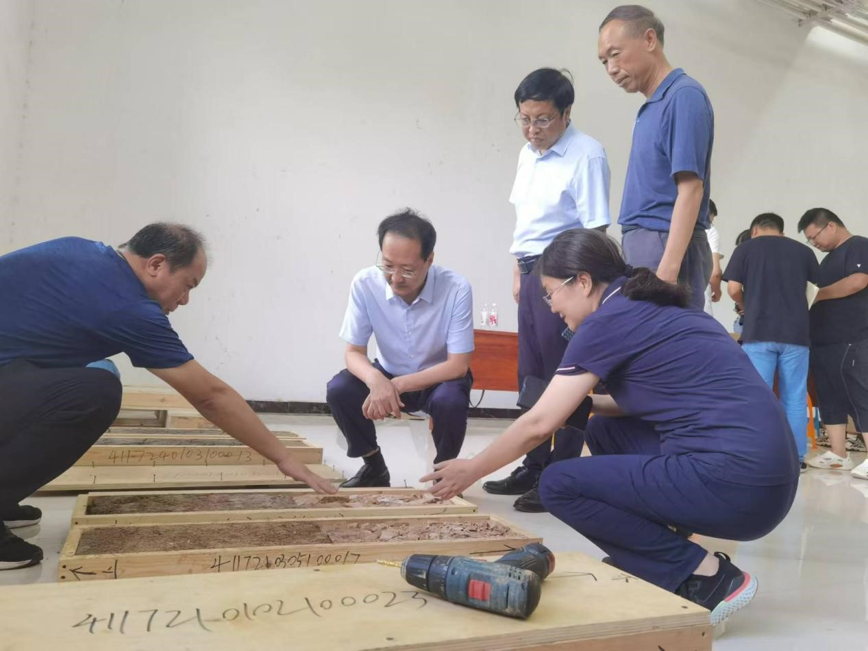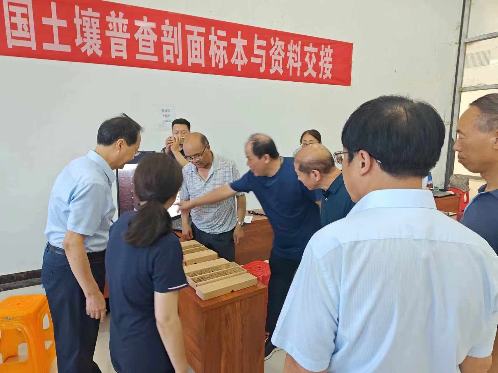 谢长伟厅长对工作人员的专业性和严谨精神给予了高度评价,并强调了标本接收工作在三普工作中的重要性。随后谢长伟厅长等考察了试点县土壤剖面标本制作与三普土壤样品库选址。