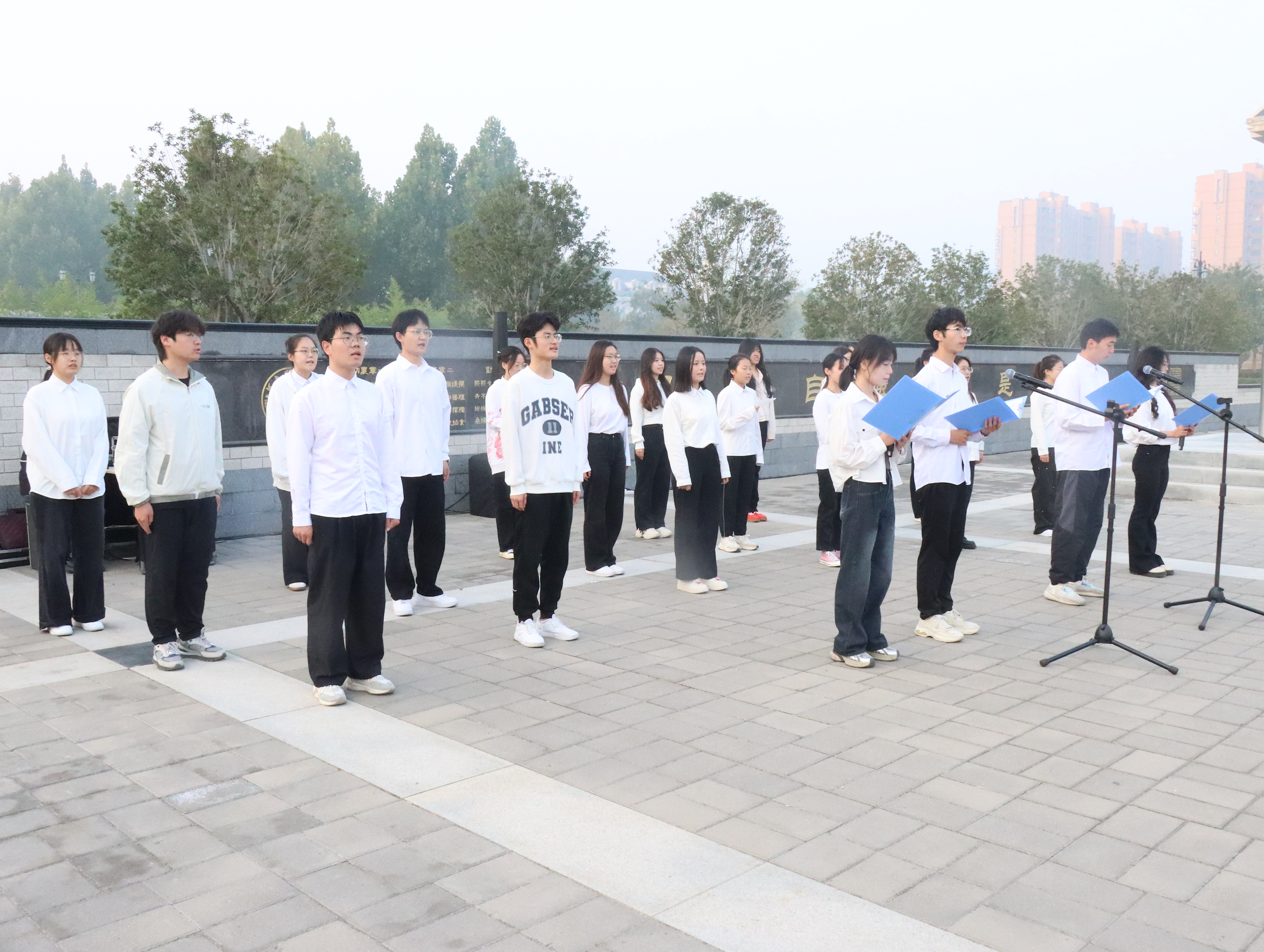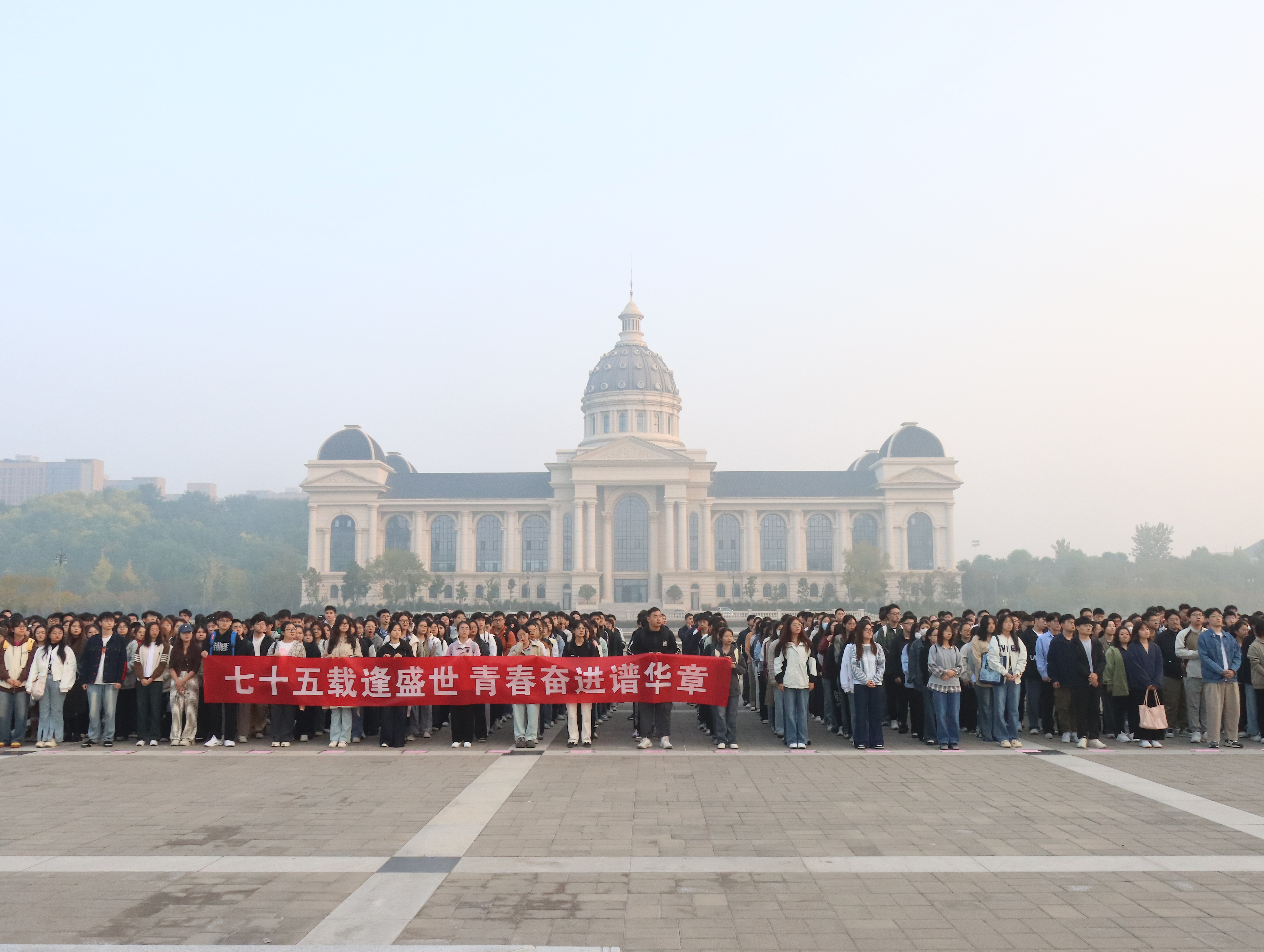 于龙子湖校区举行“七十五载逢盛世,青春奋进谱华章”主题升旗仪式。学院领导班子全体成员,各系室老师代表,21级、22级、23级本科生和全体研究生共同参加,仪式由陈景红主持。
