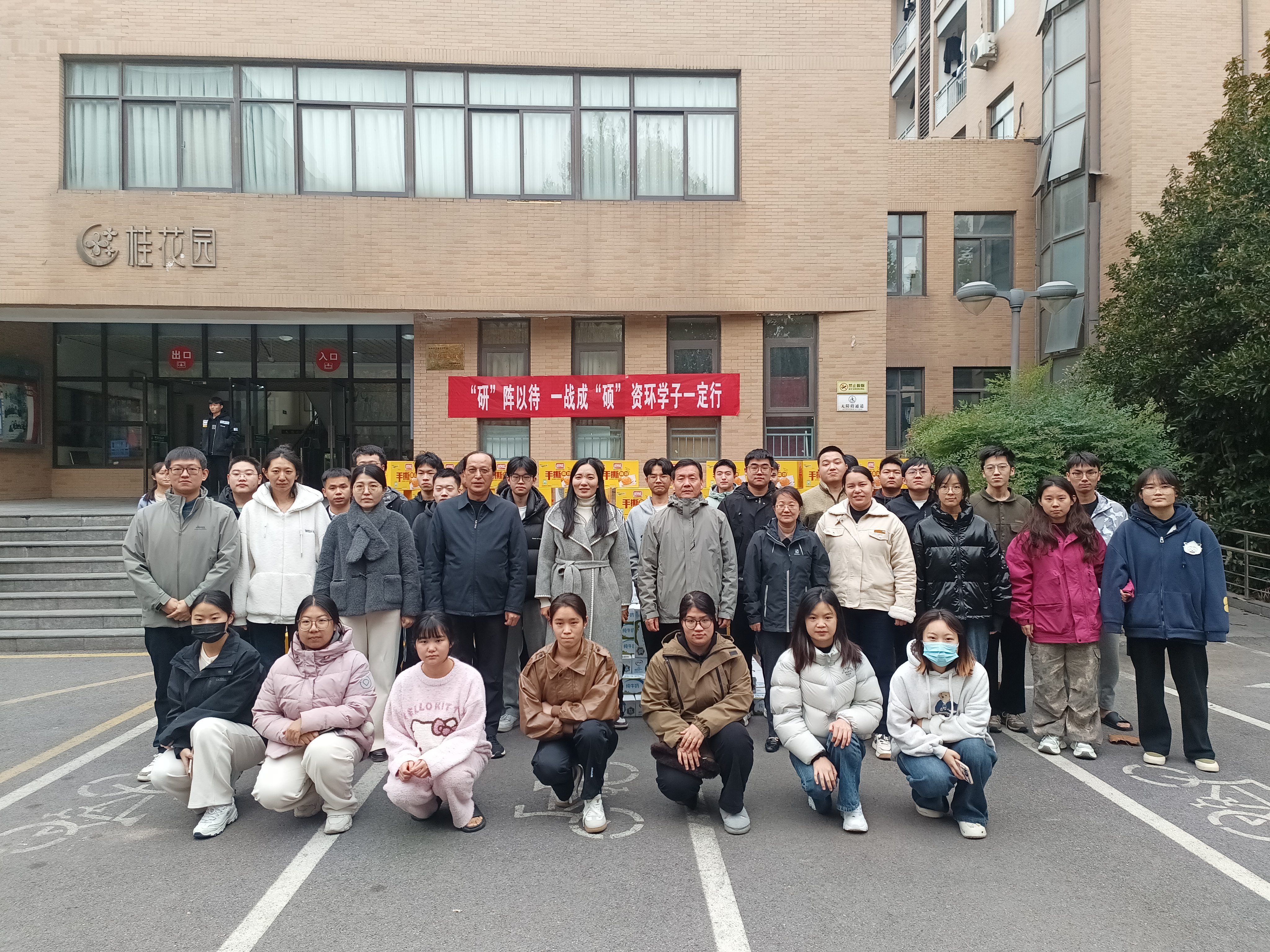在龙子湖校区桂花园楼下举行考研送温暖活动。学院党委书记李兴道,党委副书记陈景红,副院长刘世亮、李玲,以及全体团委老师在活动现场为2025年考研学生加油打气。