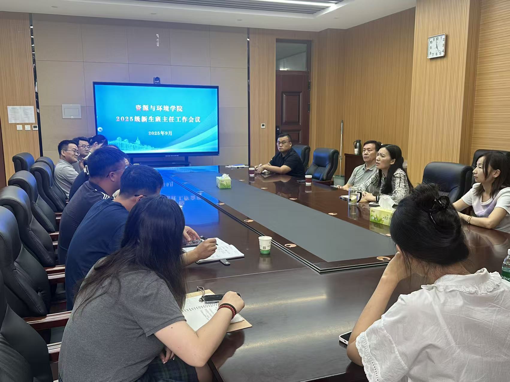 在力行楼254会议室召开2025级新生班主任工作会议。院党委书记李兴道,院党委副书记陈景红,院团委书记王岚,新生班主任和辅导员共同参会。会议由陈景红主持。