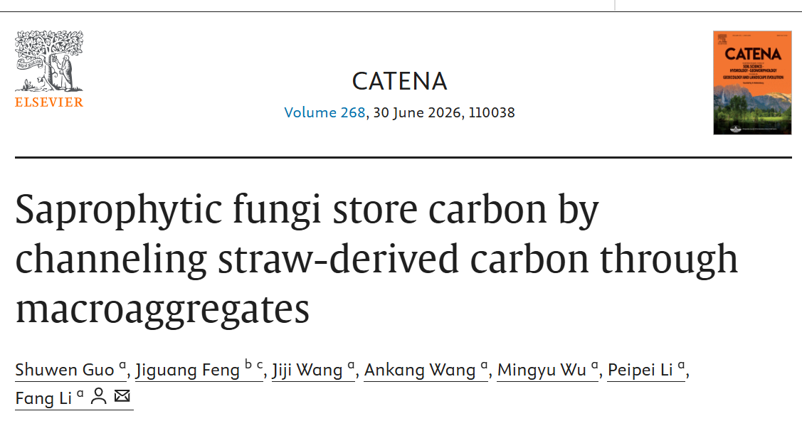 农田生产力绿色调控与功能性肥料团队的研究成果“Saprophytic fungi store carbon by channeling straw-derived carbon through macroaggregates”在土壤科学领域的国际期刊《CATENA》(新锐分区一区(原中科院一区)、JCR一区,IF 5.7)在线发表。首次揭示了腐生真菌在秸秆还田下通过团聚化过程驱动秸秆碳固持的双重机制,通过同位素标记技术明确了低等真菌与高等真菌分别通过矿物结合有机碳和颗粒有机碳两条途径促进大团聚体形成及秸秆碳固存机制,在长时序尺度下证明了土壤团聚体形成的“自下而上”与“自上而下”理论。通过解析不同真菌类群对秸秆碳在团聚体中分配路径的差异化调控,为定向构建促进土壤固碳与结构稳定的功能菌群提供了理论依据。