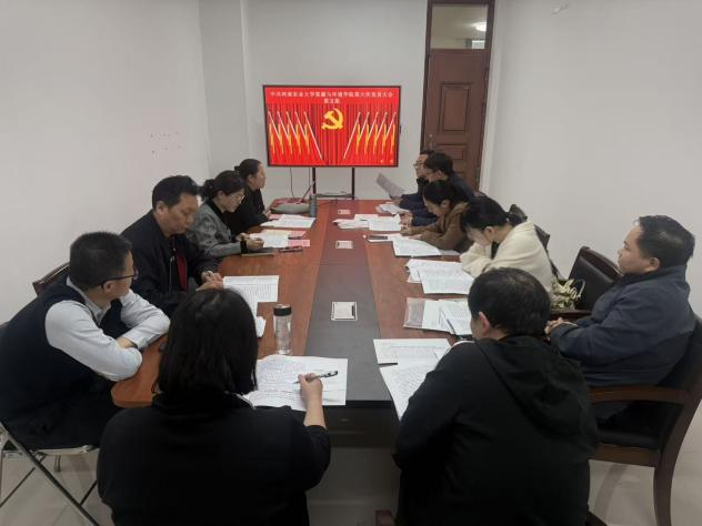 第六次党员大会在龙子湖校区力行楼338会议室隆重召开,院党委书记李兴道,院长王宜伦,副院长刘世亮等学院领导及全体党员参会。大会由院党委副书记王岚主持。