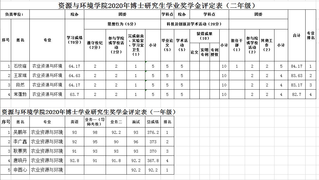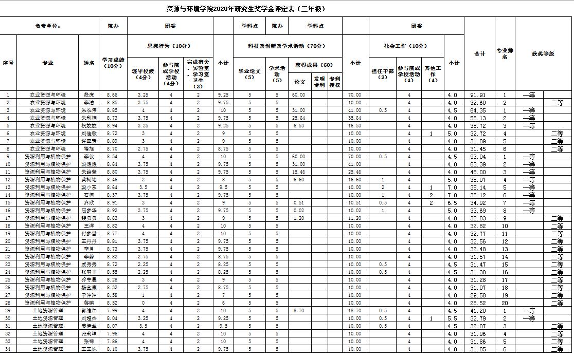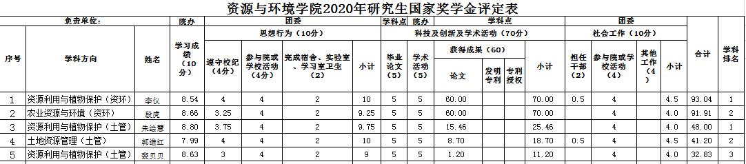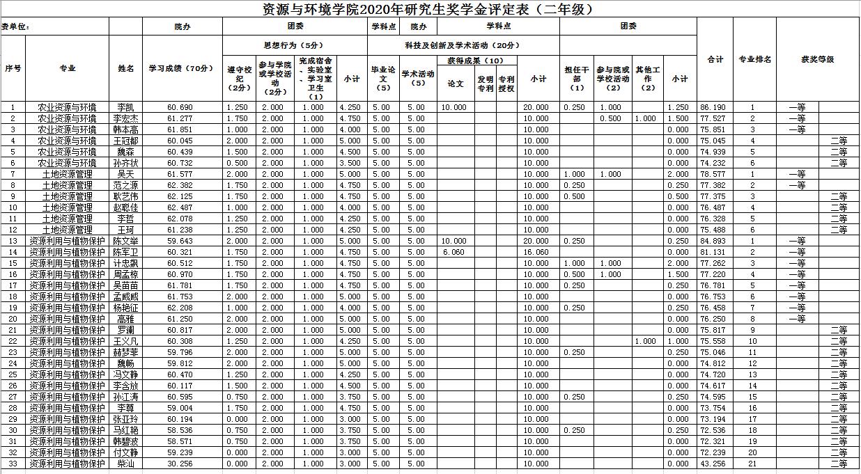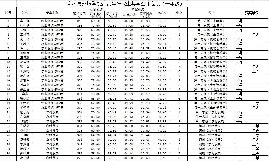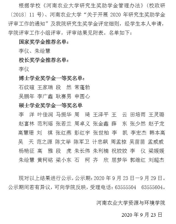 七猫小说 2020年硕士研究生国家奖学金、校长奖学金、博士学业奖学金、硕士学业奖学金 评审结果公示