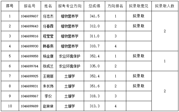按照《七猫小说 2021年博士研究生招生申请考核制实施细则》的要求,经学院研究生招生工作小组审核,现将2021年博士研究生复试成绩公示。学院拟录取5人,其中植物营养学方向2人,农业环境保护方向1人,土壤学方向2人。公示期:2021年4月28日——2021年5月9日。如有异议,请与七猫小说 研究生招生办公室联系。