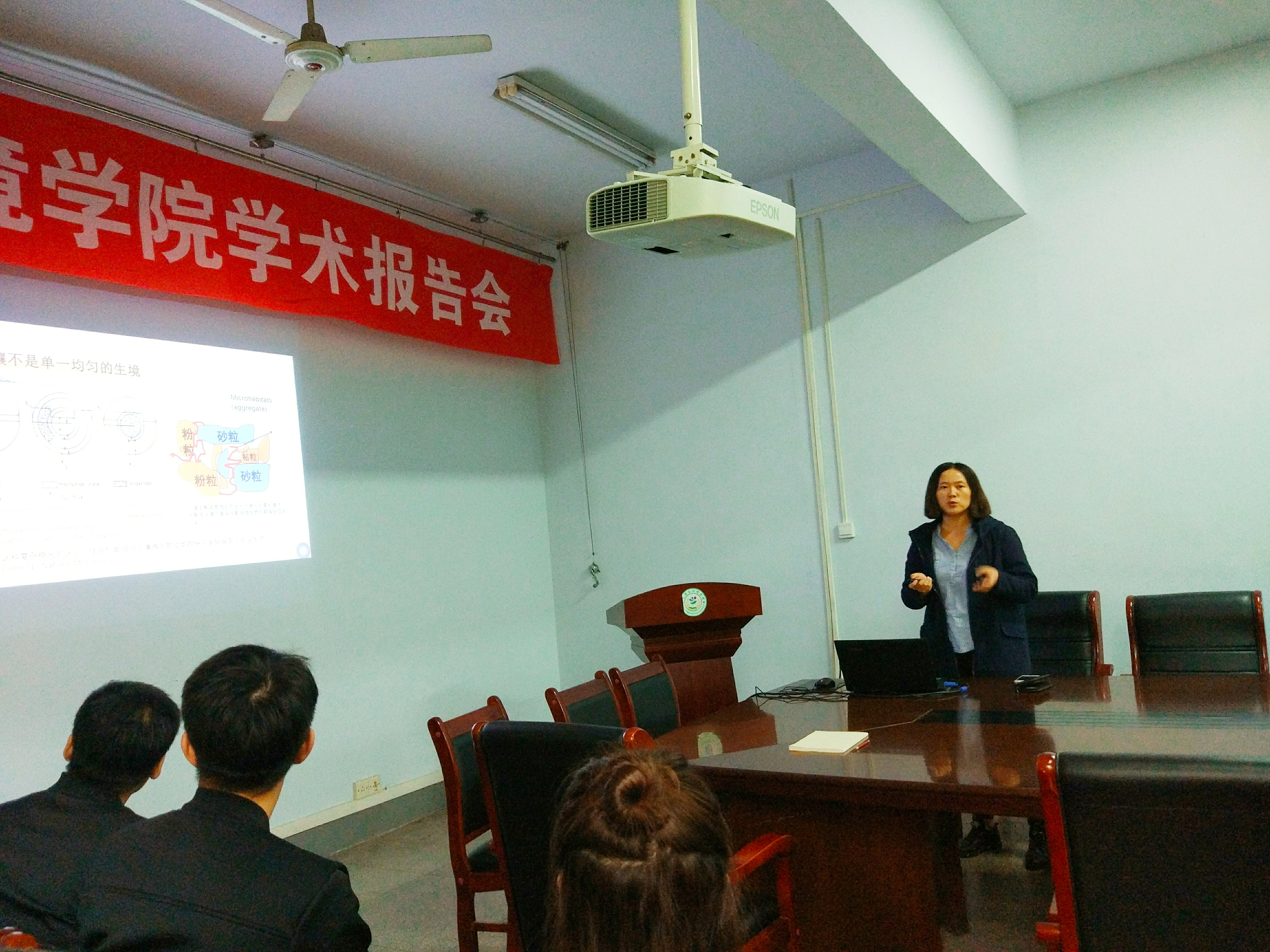 李培培副教授从项目写作思路,试验开展的获取成果和不足,以及目前国内外该领域的研究现状等方面全方位进行了报告,让大家受益良多。报告结束后,李培培副教授与在场师生进行了研究方法和研究内容等方面的探讨交流。
