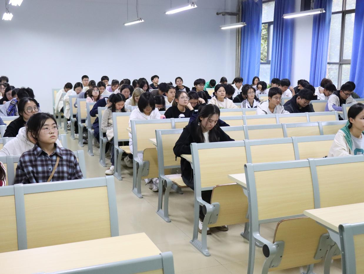 于桃李园学生公寓桃西楼203教室举办“学业规划”分享会。活动由推免生学长学姐主持,2024级全体新生参与。