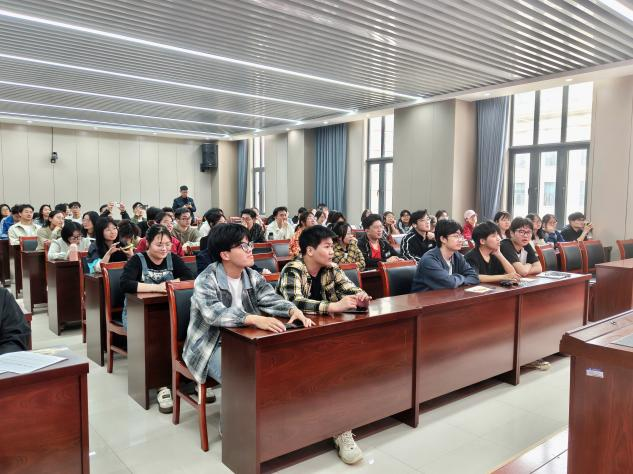 师生作专题讲座,团委老师邓晓铮、研究生代表及本科学生代表参与。