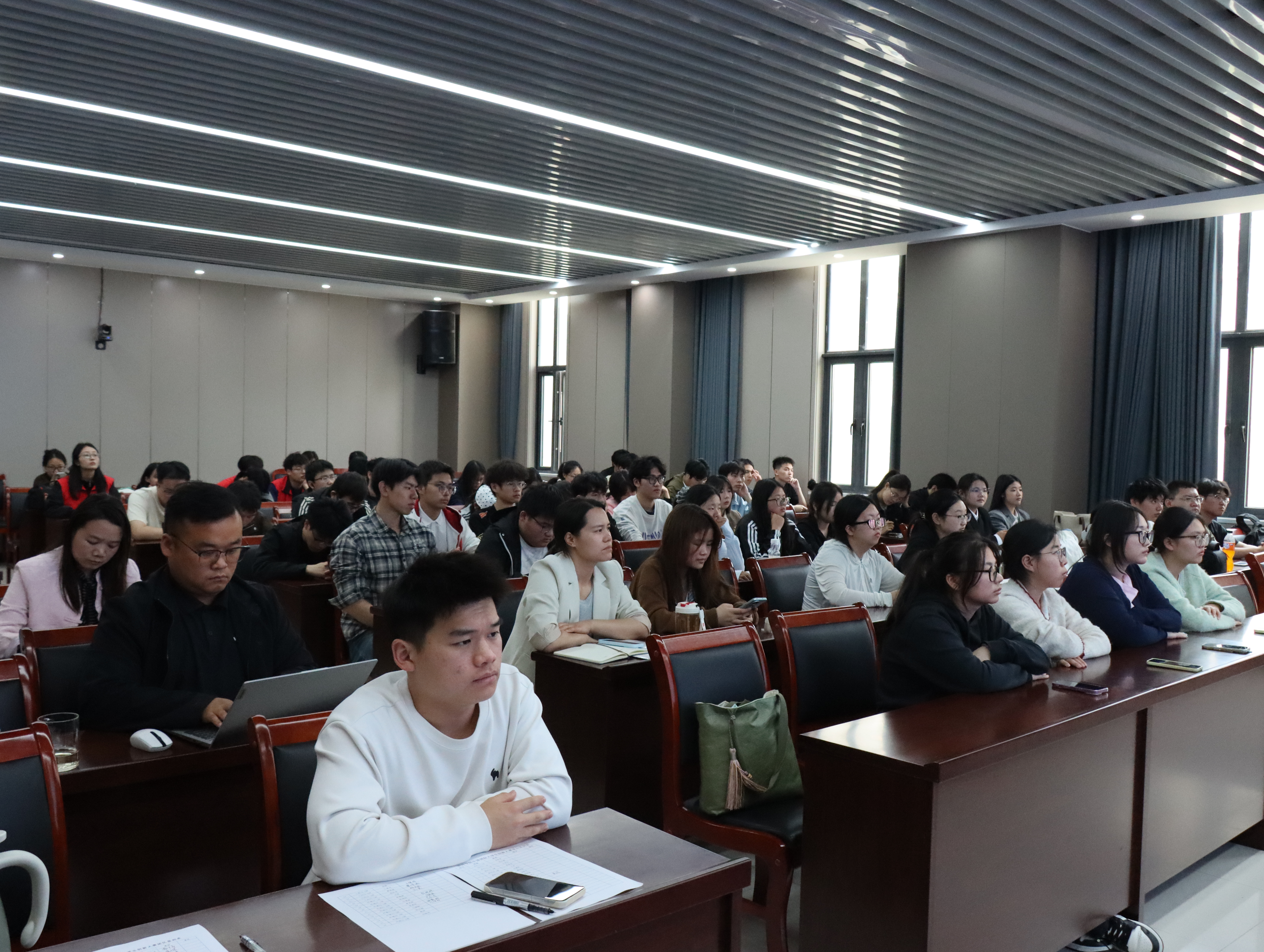 讲座上,路平老师系统梳理了大学生创新大赛的发展历程与近几年赛道迭代变化,重点讲解了最新赛事规则、项目申报流程、项目书撰写逻辑、路演PPT呈现技巧等几方面内容。路平老师还结合往届金奖项目,深入剖析备赛思路与打磨要点,为师生优化参赛项目提供了专业且实用的实战指引。在答疑环节,路老师针对师生提出的疑问逐一回应、精准解惑,现场交流氛围热烈。