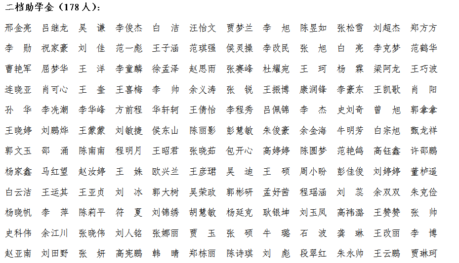 名同学获得2017-2018学年国家助学金,现予以公示,公示期为