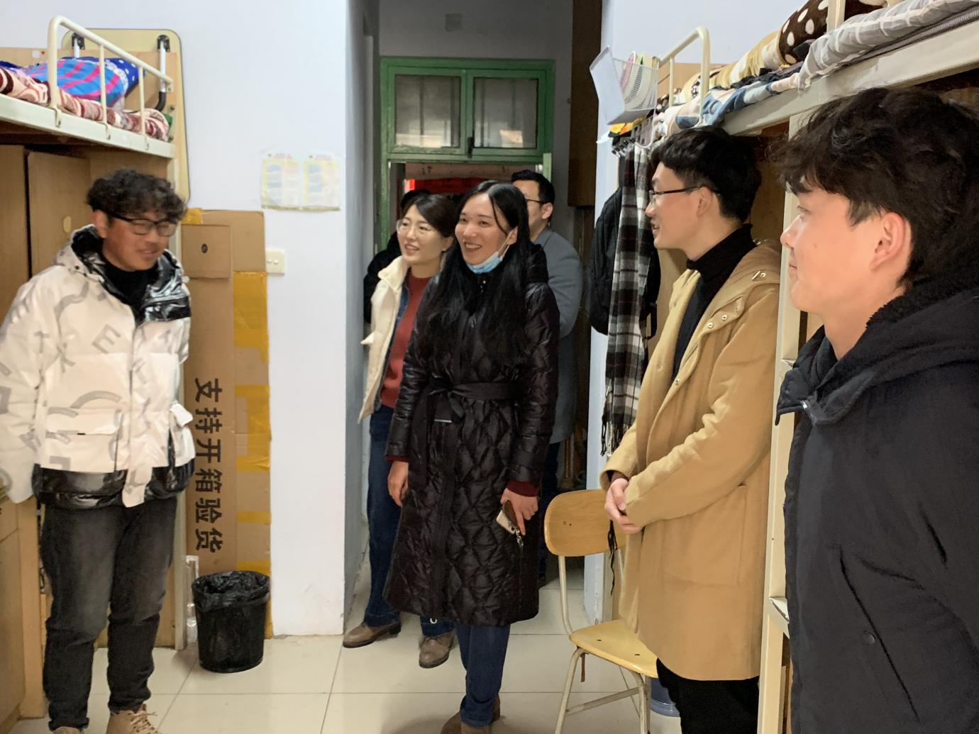 为了解返校学生生活情况,激励同学们以更加积极的精神面貌投入学习,3月1日,学院党委副书记陈景红带领全体团委老师深入走访桃李园学生宿舍,为同学们送去关心和问候。
