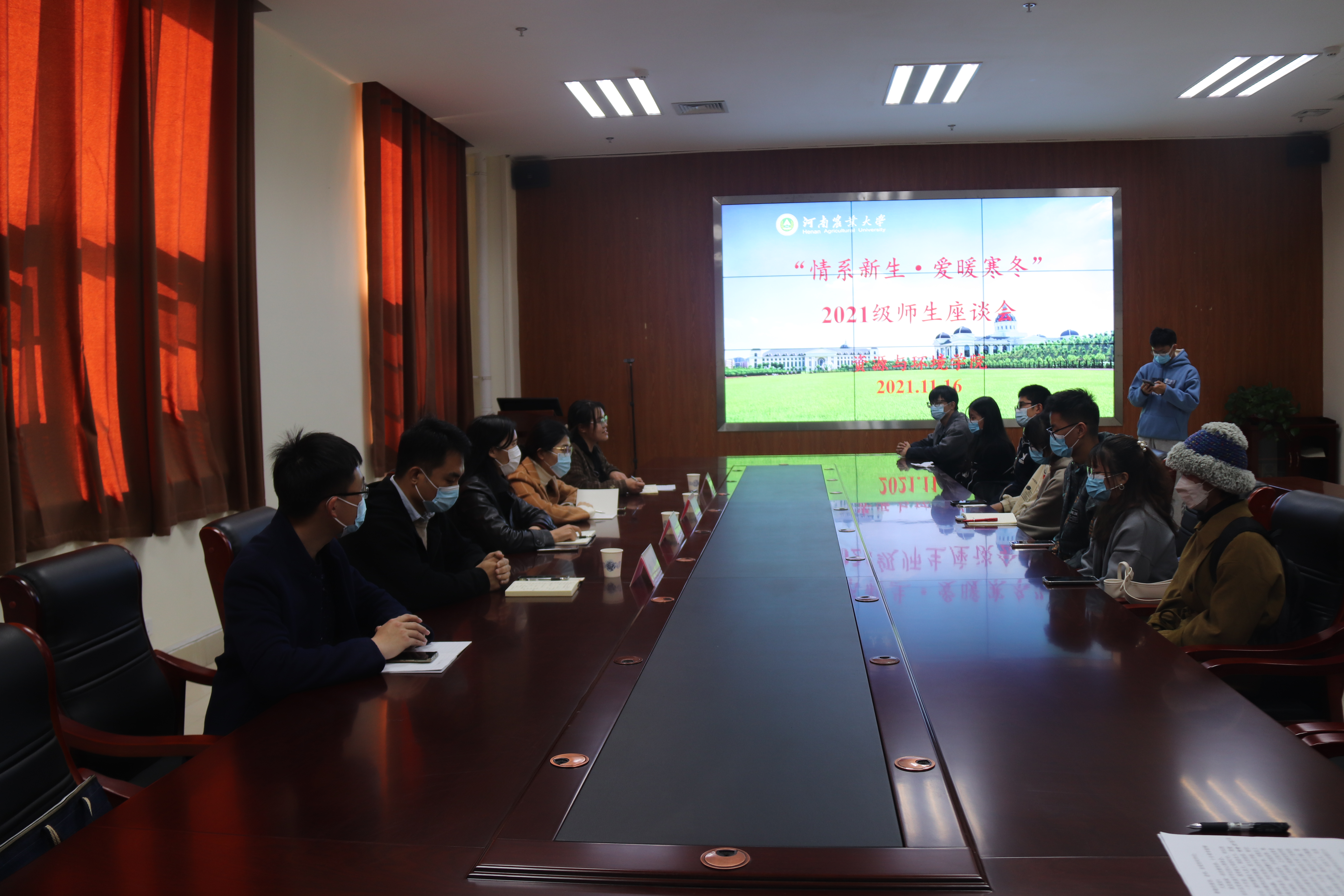 在龙子湖校区开展“情系新生,爱暖寒冬”2021级师生座谈会。院党委副书记陈景红、团委书记王岚出席座谈会,团委老师胡明阳、黄春萌、杨锦以及15名新生代表共同参加。