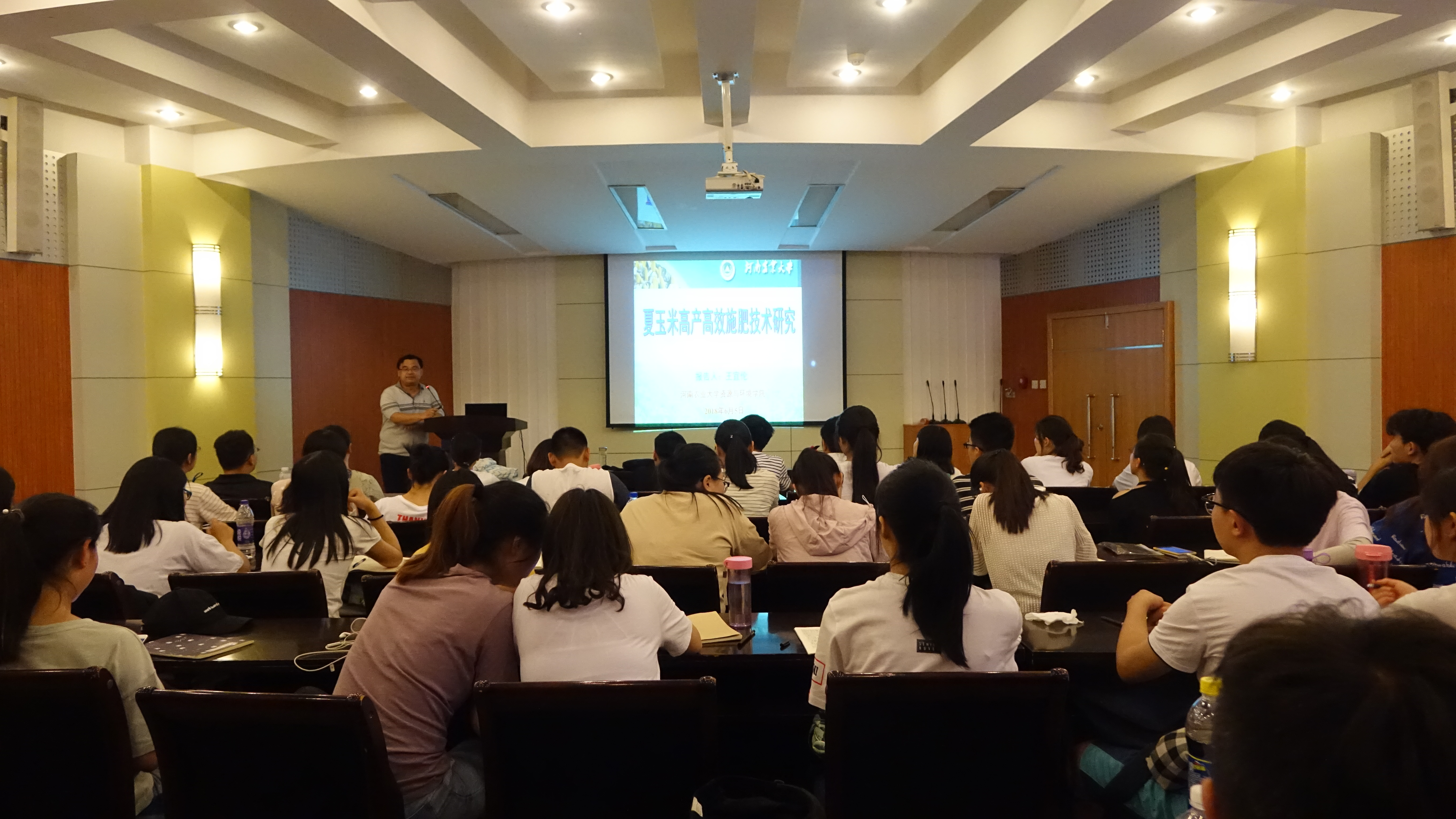 在文化路校区100人报告厅召开“夏玉米高产高效施肥关键技术研究”学术报告会,王宜伦副院长出席会议并做报告,团委书记王玲、辅导员李纪伟以及15.16级资环专业学生参加此次会议。
