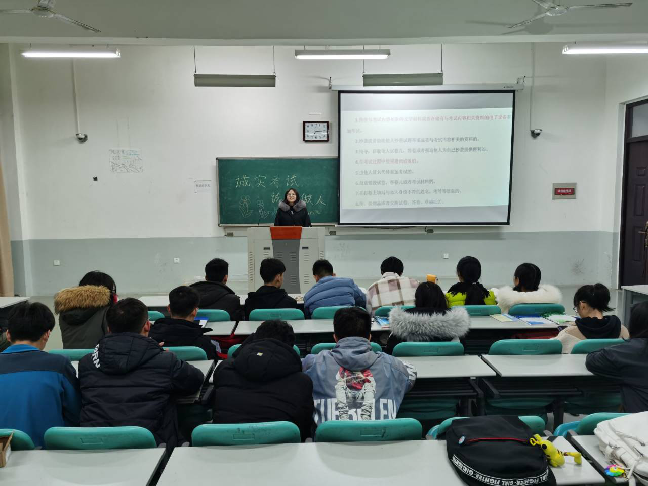 活动期间,各团支部在班长和团支书的带领下开展了主题明确,形式多样的团日活动。部分团支部选举代表上台发言,与同学们分享自己的诚信小故事,畅谈诚信对人生的作用;部分团支部以PPT的形式向同学们讲解诚信的意义,并分小组进行讨论,使同学们深刻意识到生活中诚信的重要性;部分支部班委动员同学们努力复习,诚实考试,告知同学们考试作弊的惩罚措施并带领全班同学进行诚信考试宣誓,坚定同学们树立诚信品德的信念。