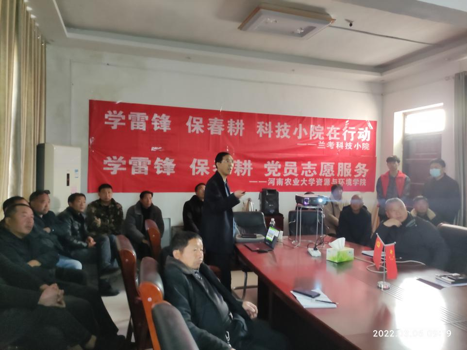 教授、农业部测土配方施肥技术专家组成员、河南科技小院负责人叶优良老师带领学生赶赴兰考县。他首先来到兰考县仪封国营园艺场,园艺场场长陈建光、我校2015级博士研究生吕伟增等40余名园艺场职工对叶优良一行的到来表示热烈欢迎。期间,叶优良围绕肥料使用中存在的常见问题,从从测土配方施肥的意义、作用及主要原理、施肥原则等多个方面对施肥技术进行了全方面讲解,讲座结束后更对农户提出的每一个问题给予详细解答。