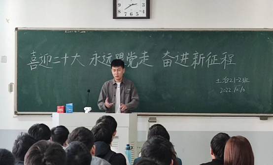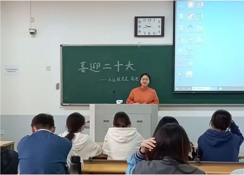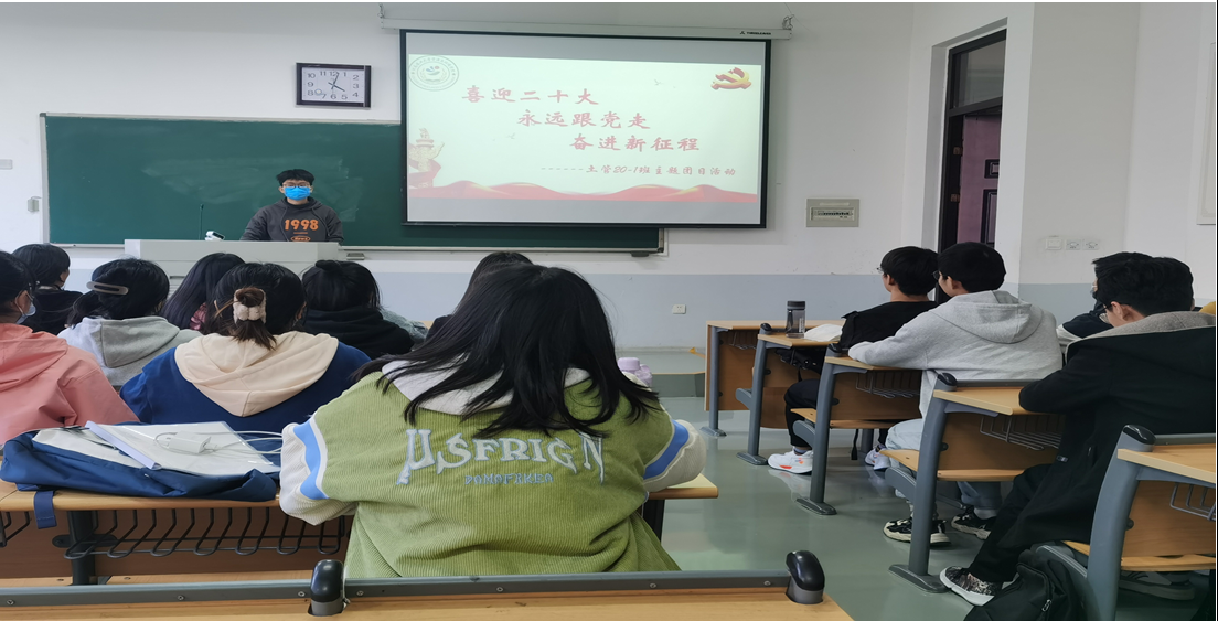 期间,各团支部以多种形式开展主题教育活动。部分班级通过放映PPT、视频等向同学们讲解党的二十大对国家与个人的重要意义;也有班级通过分享历史英雄事迹、新时代先进典型等让同学们深刻理解中国共产党的宗旨与性质;也有班级通过唱红歌、诗朗诵等活动形式加强思想引领,激励同学们坚定不移听党话、感党恩、跟党走;通过交流分享感悟,更坚定了同学们奋进新征程、建功新时代的决心。